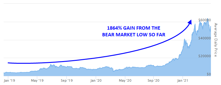 2018年12月迄今:比特币市值在姗姗来迟的华尔街助力下打破万亿美元大关