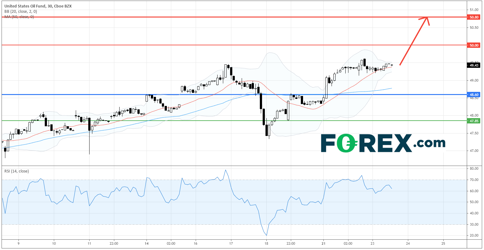只要主要支持 (止损) 48.60美元不破,股价有望上涨至50.00美元和50.80美元作上行目标。