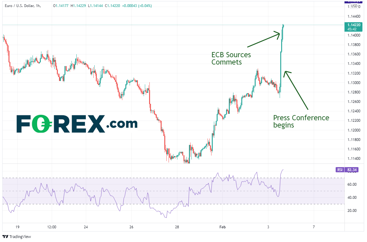 欧洲央行声明的温和程度降低,而新闻发布会期间的立场略显强硬,且欧洲央行消息人士的评论强硬。欧元/美元随后反弹逾125个点子。后市会延续这样的势头吗?拉加德指出,欧洲央行将视数据而动。也就是说,交易者也应观察数据的表现。